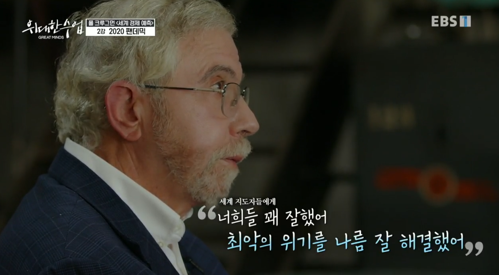 | EBS 위대한 수업 폴 크루그먼, 세계 경제 예측 - 3강. 2021 희망과 두려움 (0) | 2021.09.17 |